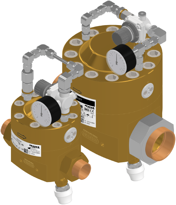 The controller is complete with venting pilot regulator and pressure gauge at secondary pressure as well as stainless steel version even with pressure gauge on the primary pressure.